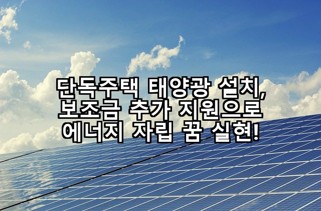 단독주택 태양광 설치, 보조금 추가 지원으로 에너지 자립 꿈 실현!